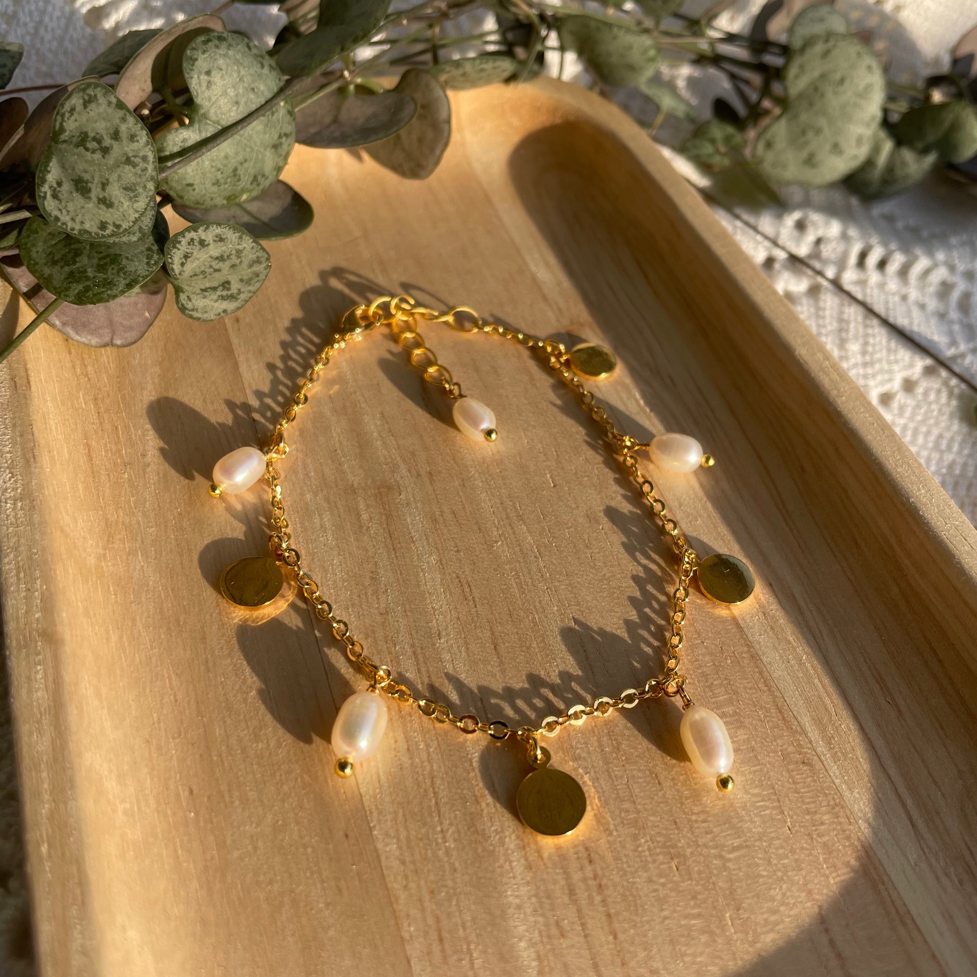24k kullatut osat ja makeanvedenhelmet. Ketjun pituus säädettävissä n. 17,5-21cm.