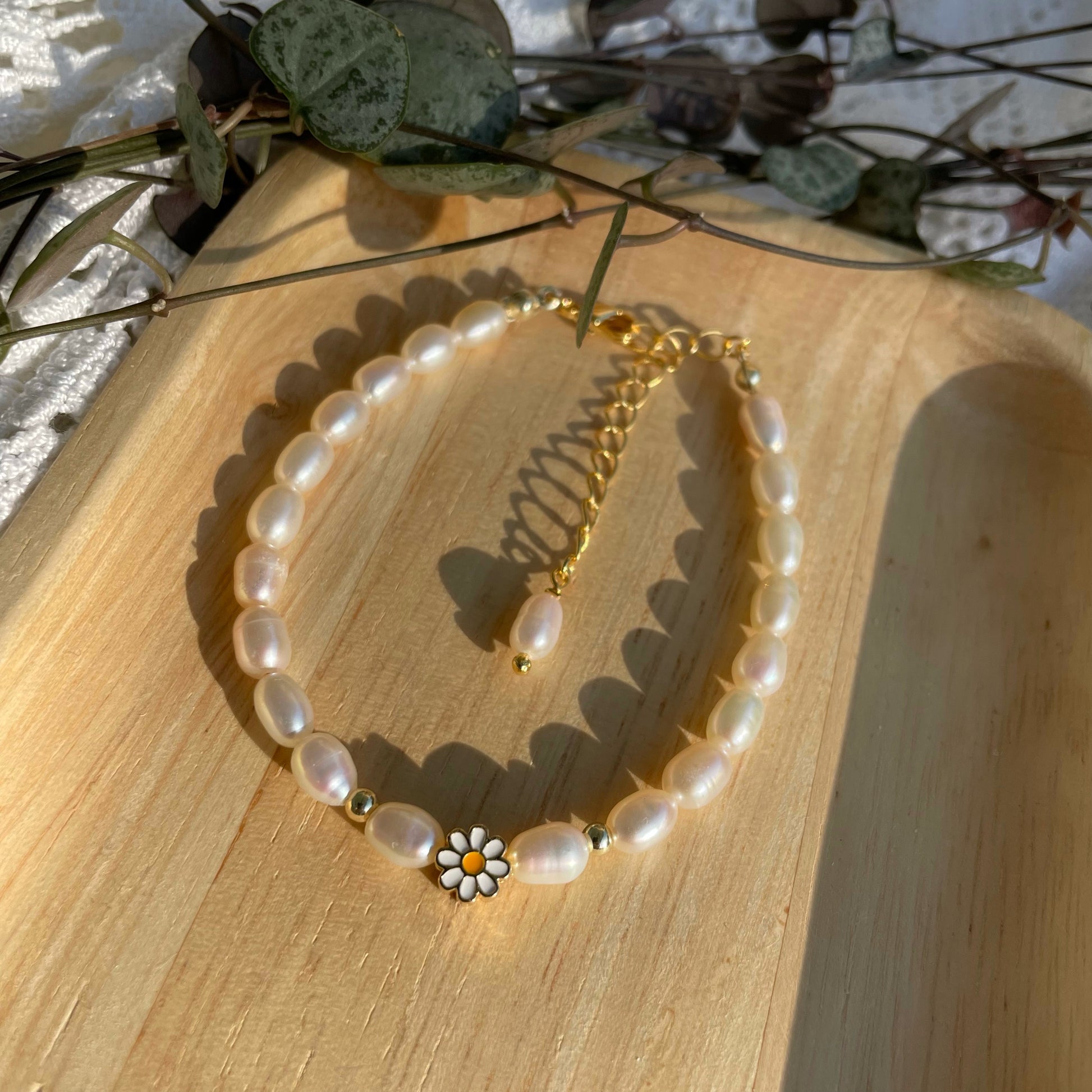 Kullatut teräsosat ja -helmet sekä makeanvedenhelmiä.