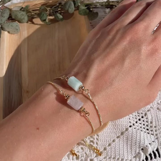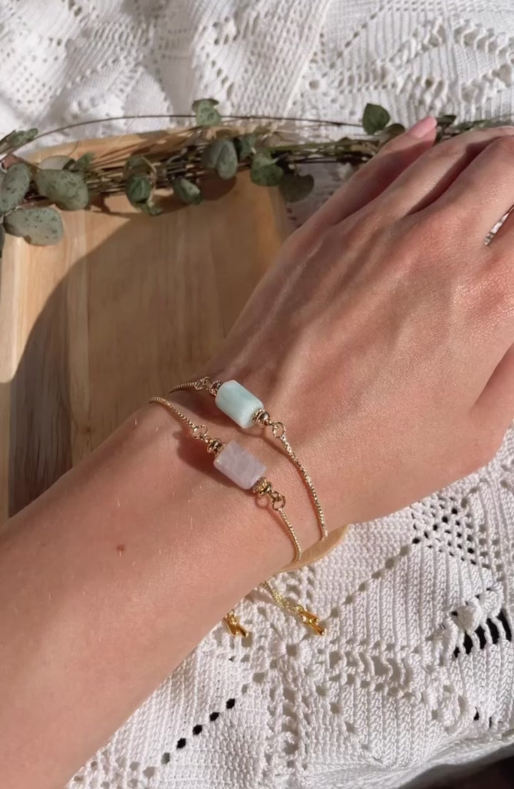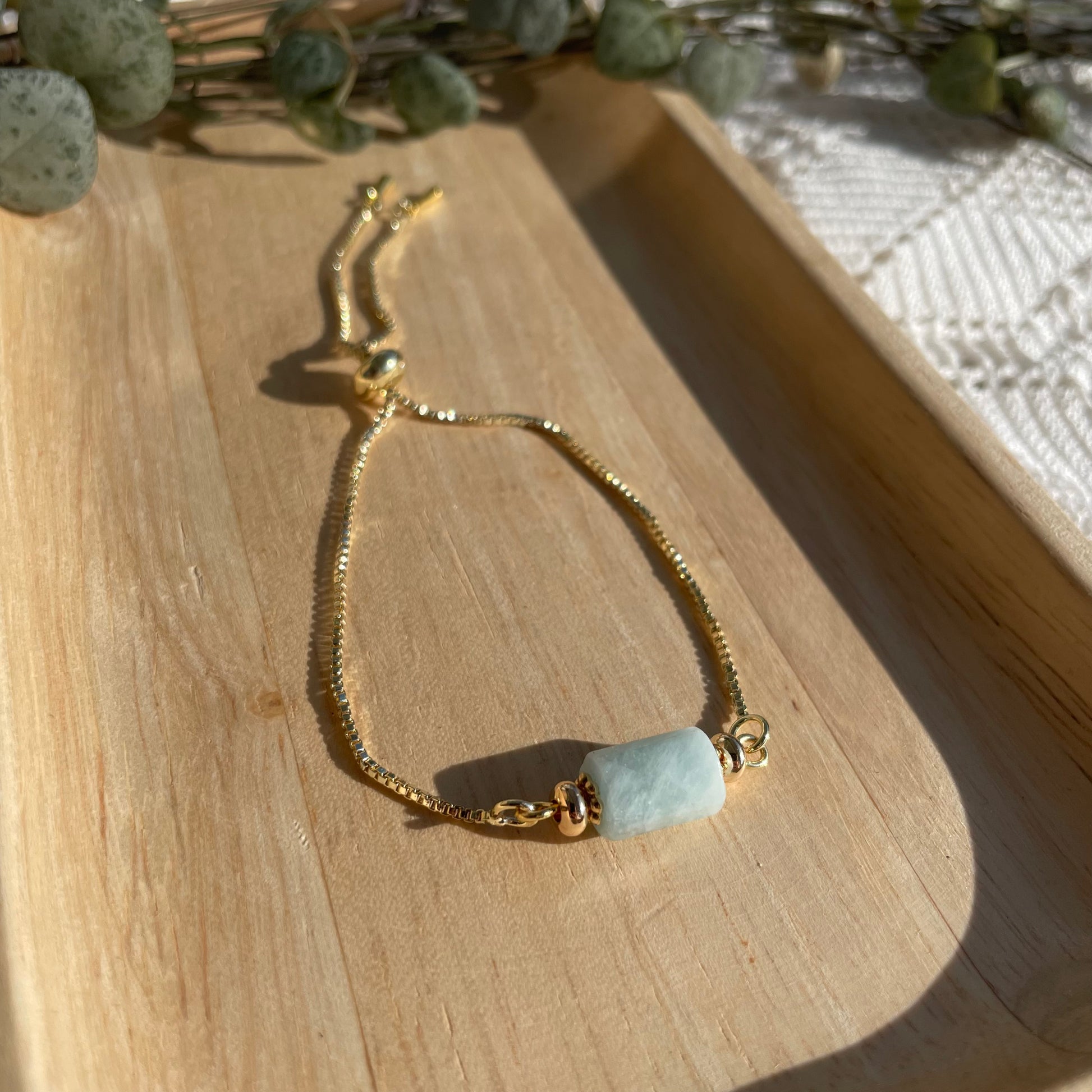 Kullattu ketju, jonka pituutta voi säätää stopperihelmen avulla. Kiviriipus.